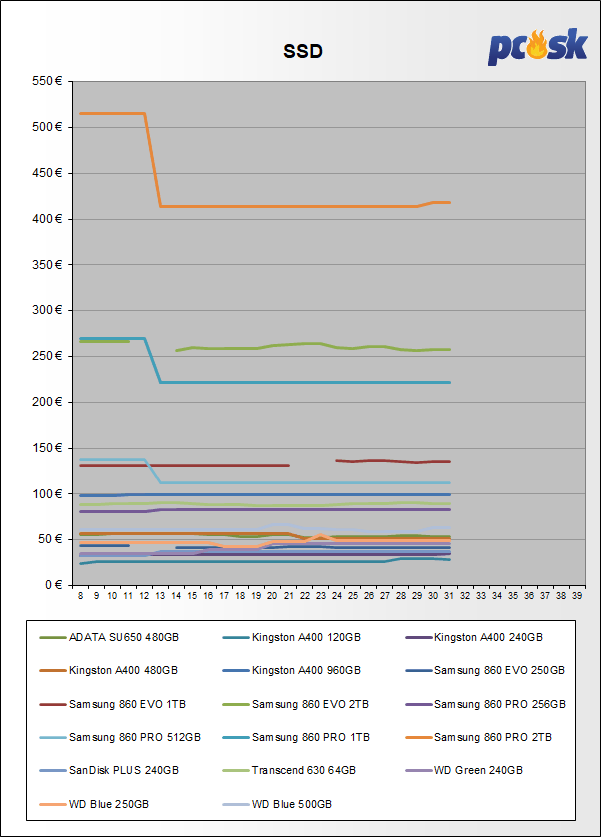 Pevné disky menili do -0,7%. U SSD to bolo od +8,2% do -3,1%.