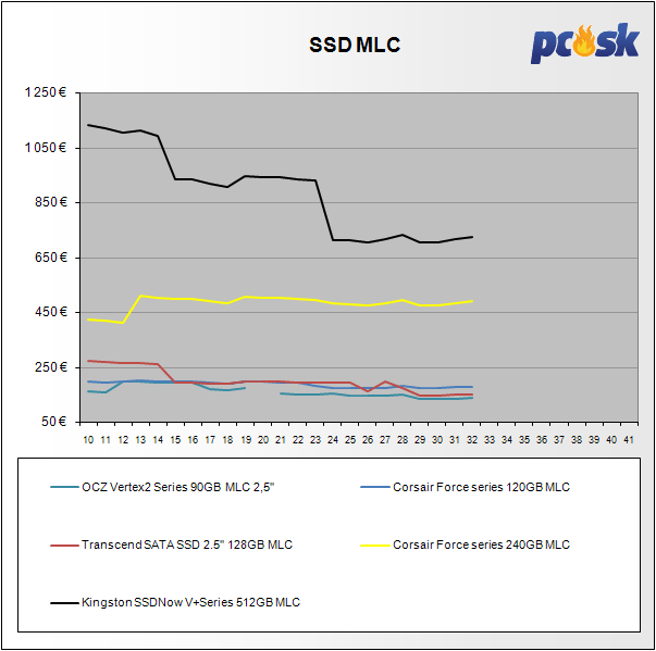 Najlepšie ceny za 1GB diskovej kapacity sú nasledovné: PATA na 320GB, SATAII na 2000GB, SATAIII na 2000GB. U SSD MLC to je 120GB a 64GB pre SLC.