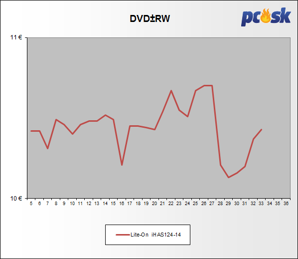 Ceny DVD a Bluray napaľovačiek sa zmenili od +2,3% do -0,5%.