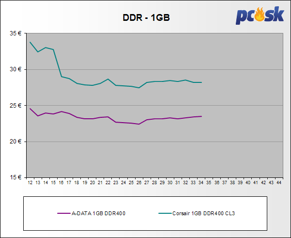 Pamäte DDR menili ceny od +0,6% do -1,1%. U DDR2 nastal pokles do 5,4%, DDR3 do 7,7% a pamäte DDR4 zlacneli až do 19,4%.