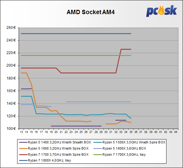 Ceny procesorov Intel sa menili od vysokých +21,1% do -2,5%. U modelov AMD nastali zmeny od +1,6% do -7,8%. Z prehľadu vypadli Core i7-8086K 5,00GHz BOX (1151) a A8-7670K 3,6GHz BOX (FM2).