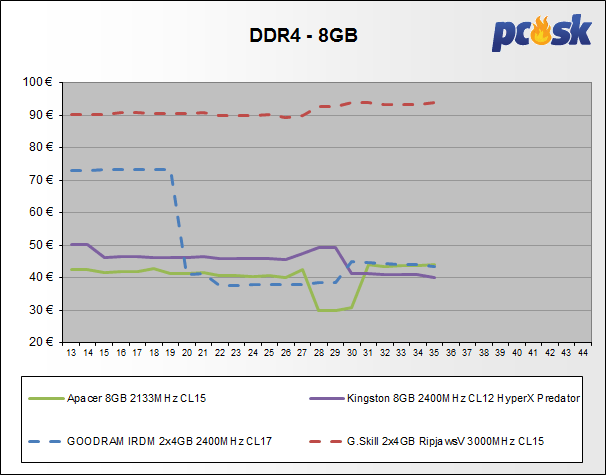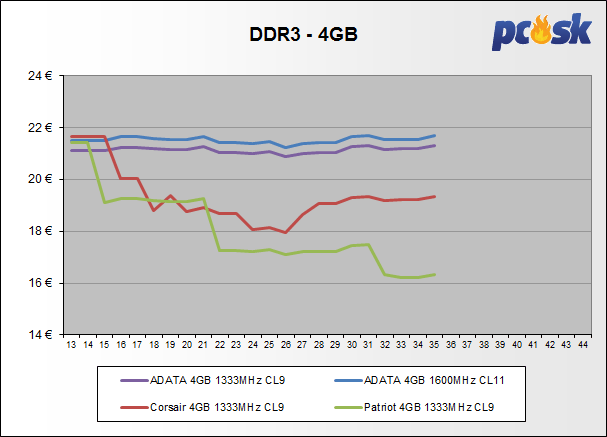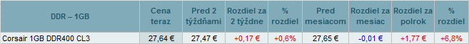 Pamäť DDR zdražela o 0,6%. Modely DDR2 menili ceny od +0,6% až do -12,6%. U DDR3 nastali zmeny od +0,6% do -2,4%. DDR4 modely menili ceny od +0,5% až do -37,7%.