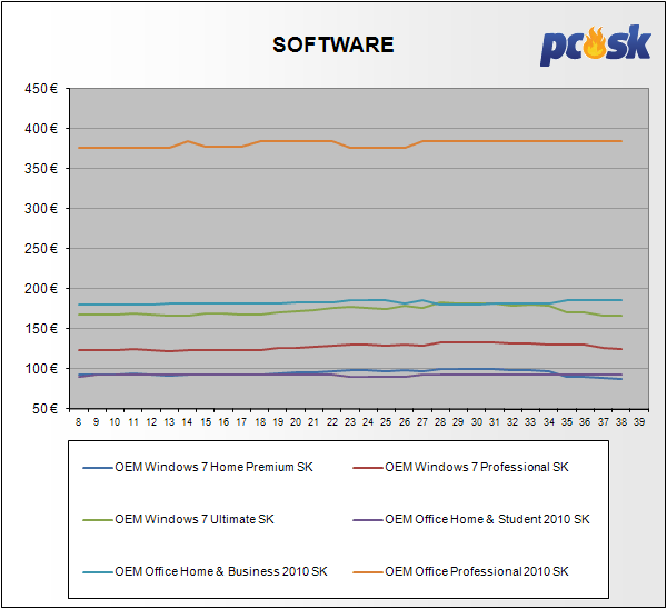 Taktiež ceny software sa zmenili smerom nadol do 4%.
