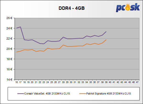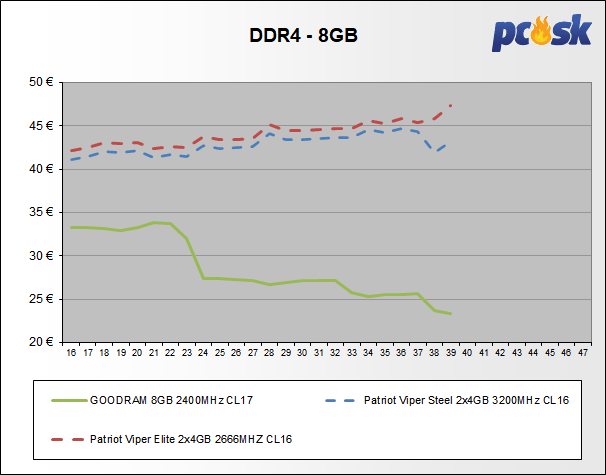 Pamäte DDR3 menili ceny od +4,2% až do -19,7%. U DDR4 boli zmeny od +4,3% do -8,6%.