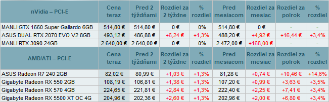 Grafické karty plošne zdraželi do +1,3%. Z prehľadu vypadol model MANLI GTX 1050Ti 4GB.