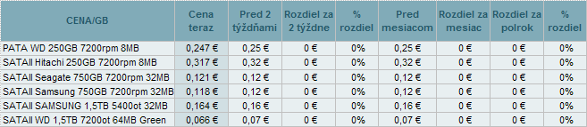 Ceny za 1GB sa u sledovaných diskov nemenili.