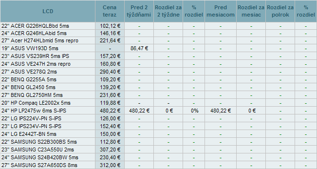 Ceny LCD panelov sa za posledné 2 týždne nezmenili.