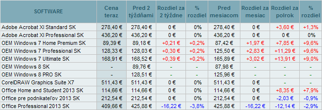 Ceny software sa zmenili od +0,2% do -3,8%.