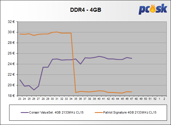 Pamäte DDR3 a DDR4 menili ceny od +0,9% až do -14,7%.