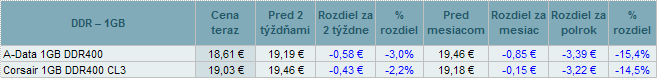 Ceny DDR pamätí sa menili do -3,0%. Pamäte DDR2 zdraželi až do 12%. DDR3 menili ceny od +8,3% do -3,8%.