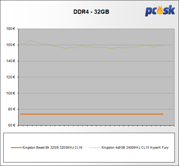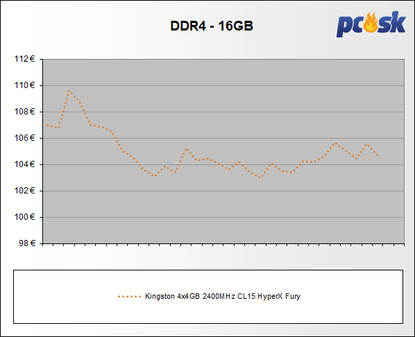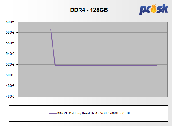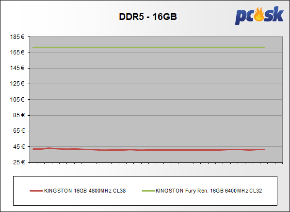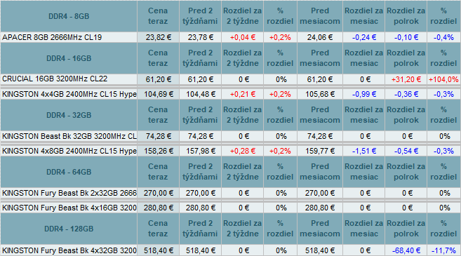 Pamäte DDR4 zdraželi mierne do +0,2% ale u DDR5 nastal nárast cien až do +58,5%. Z prehľadu vypadla posledná pamäť DDR3 a DDR4 model KINGSTON 4GB 2666MHz CL19.