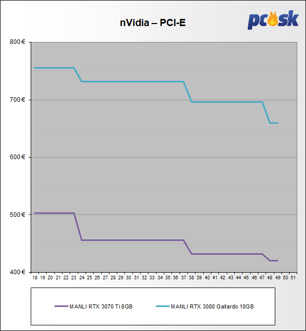 Ceny grafických kariet nVidia klesli do -0,52% a u AMD stúpli do +0,2%.