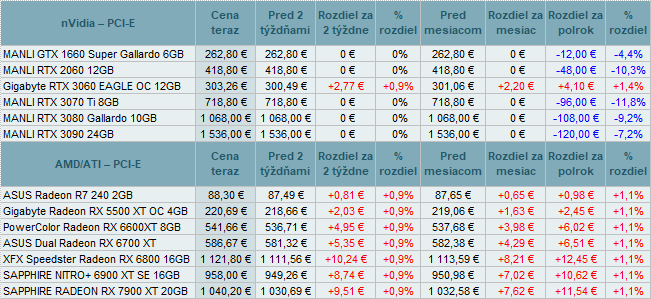 Ani grafické karty sa neodvrátili od priemeru s nárastom cien do +0,9%.