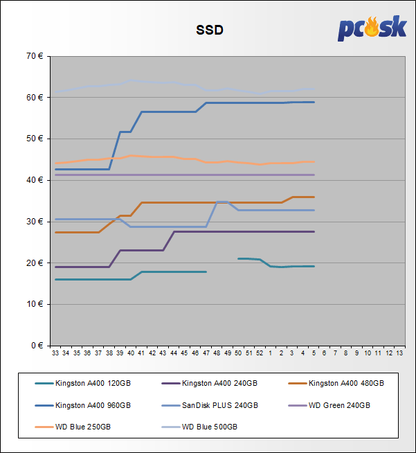 Platňové disky menili ceny od +0,9% do -4,8%. U SSD nastali zmeny až do vysokých +47,8%.