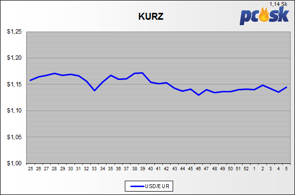 Kurz dolára za posledné 2 týždne stúpol o 0,27% na 1,145$ za €. Bol to nárast o 0,003$. Sledované komponenty kolísali pod vývojom kurzu $.