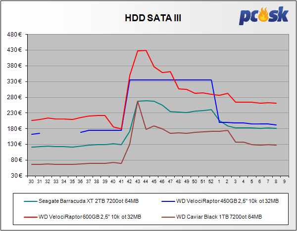 Ceny diskov aj tentokrát klesali. U PATA a SATA modelov to bolo do 4,6%. Disky pre SATAII rozhranie zlacneli až do 27,6%. U SATAIII bol pokles "len" do 2,1%. SSD disky zlacneli do 8,5%.