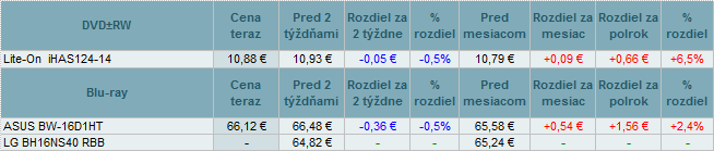 Ceny DVD a Bluray napaľovačiek sa menili do -0,5%.