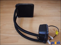 Nepton 120XL už názvom napovedá, že jeho radiátor je určený pre jeden 120mm ventilátor. To je však iba polovičná pravda nakoľko radiátor má síce šírku 150mm, no prichádza rovno s dvojicou 12cm ventilátorov a tie tak môžu byť zapojené do push/pull konfigurácie. Ofukovať budú hliníkový radiátor s vlnkovými „rebrami“, ktoré používa napríklad aj SilverStone. Aj Cooler Master trochu ušetril a miesto medi využil hliník. Radiátor má čiernu povrchovú úpravu a obe jeho hrany zdobí názov modelu. Radiátor má na sebe aj otvor pre plnenie, užívateľ by ho však nemal využiť nakoľko je cez neho prelepená nálepka o záruke a jej odstránením príde zákazník o záruku. Otvor tam je pre servisné účely a pre prvotné naplnenie okruhu.