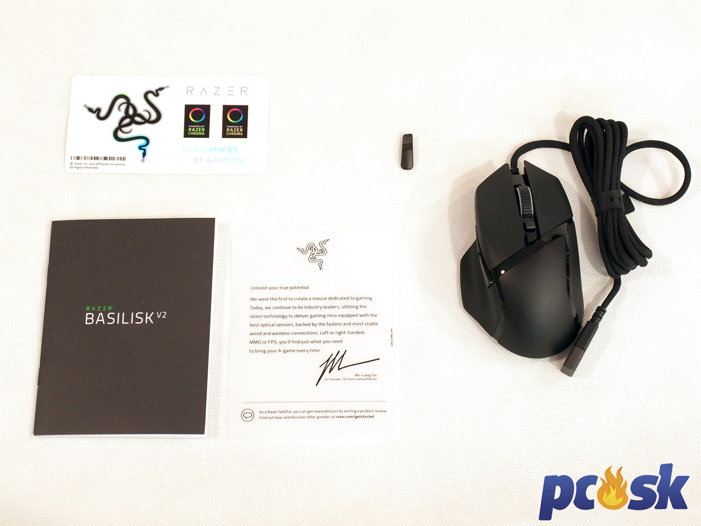 Čierno-zelená farebná kombinácia je typická pre značku Razer, rovnako ako názov, ktorý si myš prepožičala od mýtického plaza. Predná strana krabičky je matná čierna kombinovaná s lesklým vyobrazením myši.