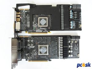 Masívnou úpravou prešli aj samotné dosky plošných spojov. U oboch sa zväčšila napájacia kaskáda (MSI – 16 fáz, ASUS – 10 – fáz, referenčná verzia 8 - fáz), referenčný 6+8pin vystriedal 8+8pin a mnoho iných vylepšení, na ktoré sa podrobnejšie pozrieme pri predstavení jednotlivých kariet. Za zmienku stoja ešte takty kariet u ktorých ASUS veľmi nešpekuloval. Jadro DirectCUII pretaktoval na 890MHz, čo je v porovnaní s referenčnou verziou len 10MHz navyše. U MSI si toho dovolili podstatne viac, jadro Lighting pracuje na slušných 940MHz. Frekvencia pamätí ostala u oboch modelov nezmenená.