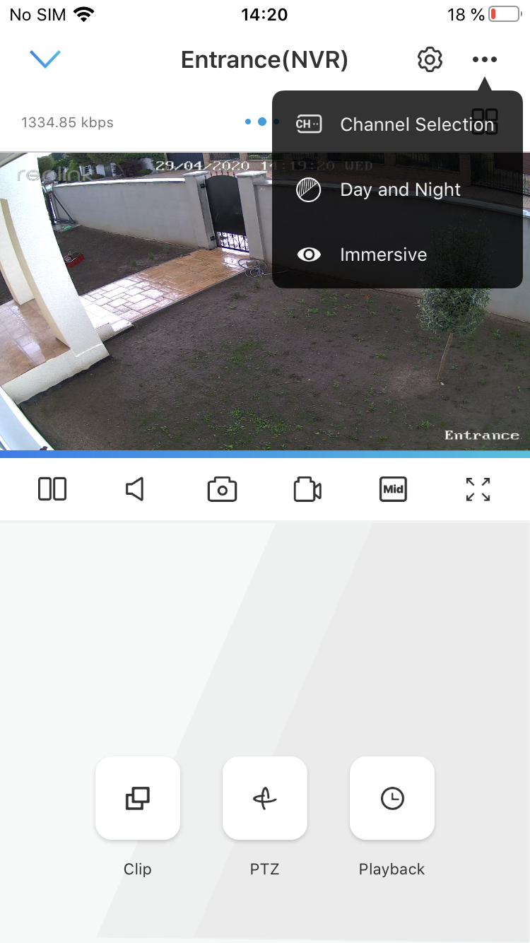 Ako prvé vám aplikácia zobrazí obraz z jednej, zo štyroch, či naraz z ôsmich kamier. Sami si môžete zmeniť default zobrazenie, ktoré je aplikované pri každom štarte aplikácie. Tým, že je aplikácia určená pre široké portfólio kamier, máte tu dostupné niektoré možnosti, ktoré na dnes testované kamery nefungujú – napríklad rotácia kamery, či zoom. Funguje však možnosť Playback – tak sa dostanete ku všetkým záznamom, ktoré sú uložené na disku.Tesne pod obrázkom z kamery máte možnosť zastaviť/spustiť prenos, spraviť screenshot, začať nahrávať video priamo do telefónu, meniť kvalitu videa, či si prenos zväčšiť priamo na celú obrazovku telefónu.