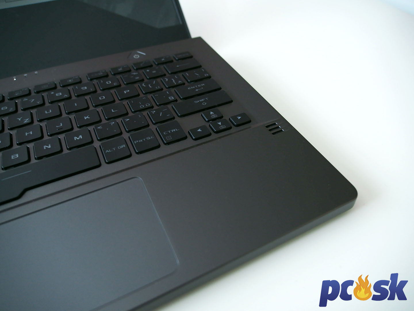 Nad klávesnicou sa nachádzajú štyri extra klávesy, ktoré sú vyhradené na ovládanie hlasitosti, vypnutie mikrofónu a tlačidlo ROG, ktoré slúži na prepínanie výkonových profilov.