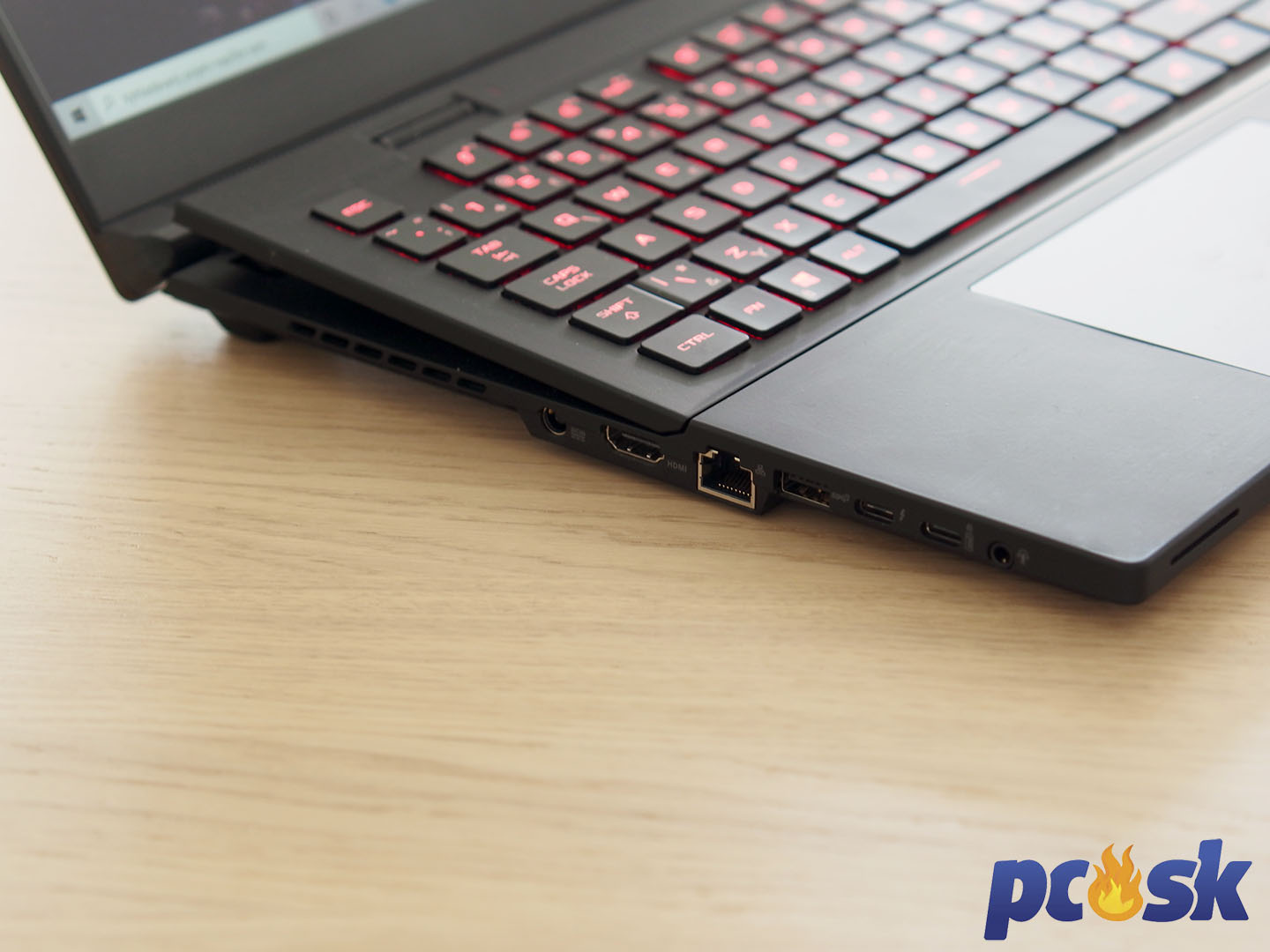 Špeciálnu pozornosť si zaslúži klávesnica, pretože pod pojmom herný notebook zašiel ROG o kus ďalej ako len po podsvietenú klávesnicu. Spínače sú v tomto prípade opticko-mechanické. Čo je v tomto prípade podstatné, je haptická odozva veľmi podobná nízkoprofilovým mechanickým spínačom. Po zatlačení klávesu tak hneď cítite, kedy dochádza k aktivácii, ktorá je sprevádzaná aj tichým kliknutím. Klávesy naviac kladú mierny odpor, takže nedochádza k nechceným stlačeniam.