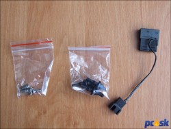 Posledný ventilátor, ktorý si predstavíme je ultra-quiet PWM. V obchodoch ho hľadajte pod označením FQ122. Balenie je v podstate rovnaké ako u prechádzajúcich dvoch modelov, rozdiel je len vo farbách, ktoré sú modrejšie. Tento ventilátor disponuje najbohatším príslušenstvom, ktoré sa skladá zo 4 gumených skrutiek, 4 skrutiek, antivibračných podložiek, redukcie z MOLEX na 2pin a 4-pinovej redukcie. Tá má za úlohu znížiť maximálne otáčky a tým pádom aj hlučnosť ventilátora.