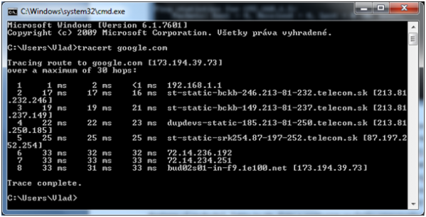 Predtým sme si už skúšali príkaz ping, ktorý sa používa na základný test konektivity. Niektoré OS však môžu mať zakázané na ICMP ECHO výzvy odpovedať, preto je tento test nie vždy 100%-ný.