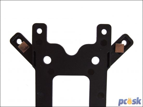 Na začiatku montáže treba do správnych otvorov backplate podľa socketu zasunúť skrutky. Ich hlavičky treba natočiť tak, aby zapadli do výrezov v backplate a nestáli na jeho hranách (ľavy roh je ukážkou správnej montáže, pravý ukazuje ako to nemá vyzerať). Backplate skrutky nefixuje a je trak potrebné ich zafixovať plastovými krytkami.