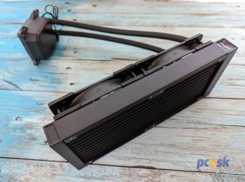Zbytok vecí na chladiči je porovnateľné s prémiovými AiO chladičmi – hadice sú oflexované, ventilátory medzi sebou prepojené a tak netreba ťahať od ventilátorov dva kábliky. Veľkým plusom je, že ventilátory môžete s doskou prepojiť z hociktorého ventilátora, pričom sa budú točiť oba. Navis F240 využíva na chladenie najnovšie ventilátory Fluctus, ktoré majú veľmi slušný PWM rozsah od 300 do 1800 RPM.