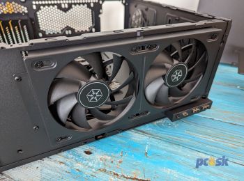 Možno trochu na škodu, že SilverStone sem namiesto jedného 120mm ventilátora nepribalil 2x82mm ventilátory.