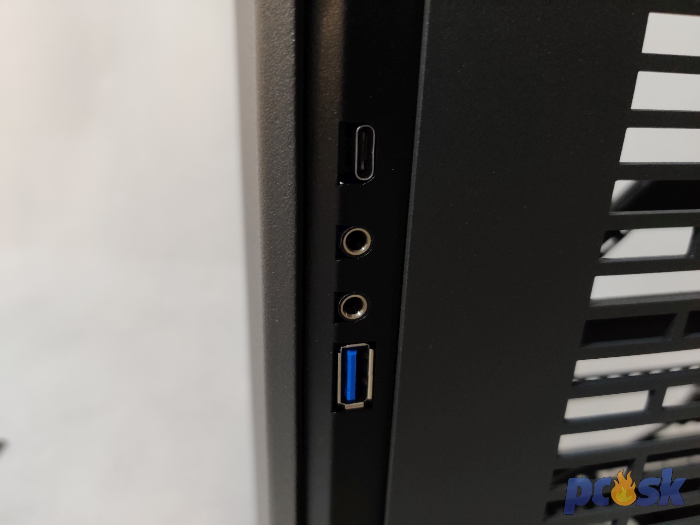 Skrinka má len jedno tlačidlo, ktoré je umiestnené presne v strede hornej časti. Na boku skrinky nájdete zase I/O vstupy (USB 3.2, USB-C a audio vstupy pre slúchadlá).