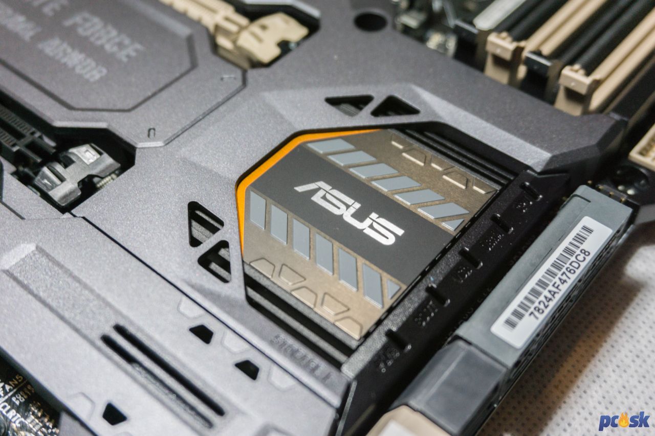 Doska je čierno-sivá. Takto farebne ladenú zostavu sme videli už 1000 krát a ako celok - pôsobí pomerne nudne, nijak výnimočne. Preto som sa pozrel na ďaľšiu farbu, ktorú doska ponúka. Síce zastúpená pomerne málo, ale o to zaujímavejšia farba – oranžová. Oranžovú farbu nájdeme na ledkách dosky, na pasíve čipsetu Z170 a na prepínačoch toku chladenia dosky – Termal armor.