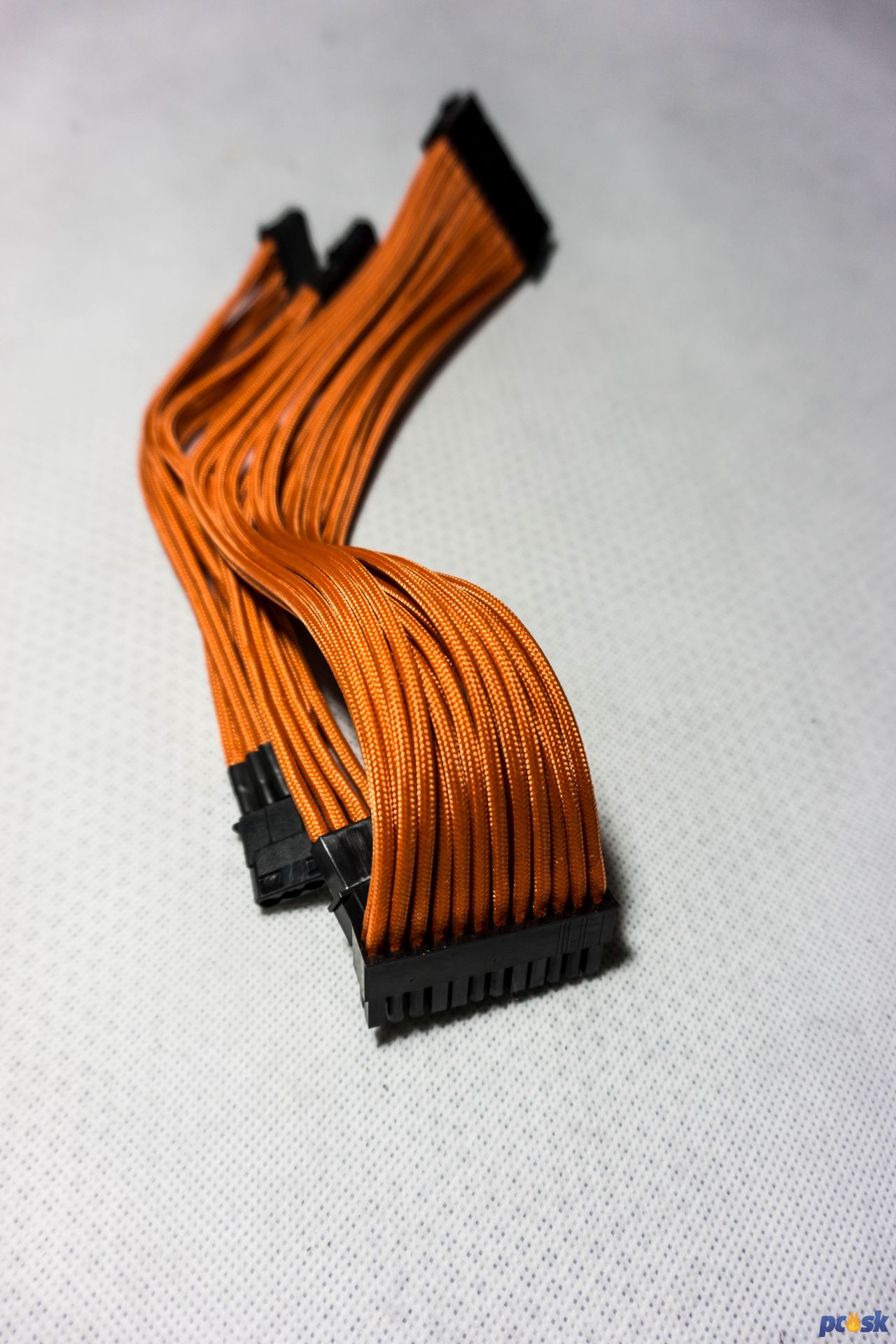 Všetky hlavné káble – 24PIN, 8 PIN, 2x 8 PIN pre grafickú kartu a elektrinu pre zvukovú kartu budú oranžové. Rozhodol som sa pre predlžovacie káble BitFenix Alchemy. Jediným problémom s predlžovacími káblami bude ich ukrytie v skrinke. Káble dodávané k zdroju som použitím BitFenix Alchemy predĺžil o 30cm. Pevne dúfam, že sa mi ich podarí v skrinke schovať.
