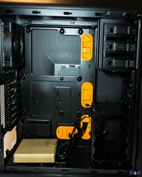 Celá zostava bude osadená do skrinky Be Quiet! Silent Base 800 Orange. Ako vidíte na fotke, oranžová farba sa nachádza v prednej časti, okolo skla v bočnici a aj vo vnútri skrinky. Aby toho nebolo málo - nohy na ktorých skrinka stojí, budú prestreknuté rovnako na oranžovo. Táto skrinka okrem dobrého vzhľadu poskytuje ďalšie podstatné veci, ktoré som od skrinky požadoval. Ticho a dobré chladenie. O obe sa okrem samotnej konštrukcie skrinky postarajú dodávané ventilátory Silent Wings 2, ktoré sa od výroby nachádzajú v prednej časti – 2x 140mm verzia a v zadnej časti – 1x 120mm verzia. Chladenie doplním o ďalšie 2 ventilátory rovnakého výrobcu. Do spodnej časti ako intake použijem dodávaný Silent Wings 2 zo zadnej časti. Ten bude vzadu nahradený ventilátorom Shadow Wings sw1 a na odťah teplého vzduchu do hornej pozície použijem ďalší Silent Wings 2. Všetky ventilátory navyše pasujú do tejto zostavy aj vďaka oranžovému nápisu Quiet! v strede ventilátora.