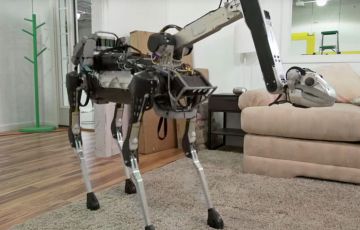 No nie je rozkošný? Robot SpotMini od Boston Dynamics (firma patriaca zatiaľ Google-u) vie dať riady do umývačky, doniesť pivo a po komickom pošmyknutí na banánovej šupke sa dokáže sám postaviť.