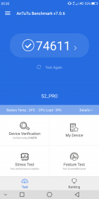 Ako býva zvykom, takmer u všetkých menej známych čínskych výrobcov pri výbere CPU a tým pádom aj GPU padá voľba väčšinou na čipy Helio. U S2 Pro nájdeme čip Helio P25 a GPU Mali-T880, ktorý je doplnený o 6GB RAM a 128GB vnútornej pamäte. Parametre sú to na čínsky telefón pomerne slušné. Čo sa týka bežnej práce s telefónom, nejaké extra výhrady k telefónu nemám. Samozrejme si treba uvedomiť, že to nie je high end trieda a rýchlosť prostredia a prepínanie medzi obrazovkami nebude tak rýchle ako u OnePlus 5/5T, Samsung S8/S9, či Huawei telefónov. S multitaskingom nebudete mať na S2 Pro žiaden problém. V pamäti dokáže bežať približne 23-25 programov či hier. Pri hraní graficky náročných hier počítajte s mierným sekaním.
