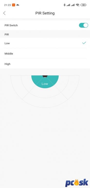 Kamera samozrejme zaznamená aj pohyb zvieraťa alebo auta, ale nijak na to nereaguje. Až v prípade, že sa pred kamerou objaví človek, kamera spustí alarm (alarm spočíva v spustení zvukového upozornenia a blikania dvoch LED diód) a ak osoba neopusti do približne 15 sekúnd monitorovací priestor, začne nahrávať a na telefón dostanete upozornenie o detekcií človeka. Alarm osobne odporúčam zapínať na noc, keď už sa nebudete v monitorovanom priestore pohybovať. Musím povedať, že detekciu pohybu má Vacos Cam naozaj výbornú. Akonáhle som vstúpil do monitorovaného priestoru, kamera v tom okamžiku spustila alarm. Nepodarilo sa mi PIR kamery nijako oklamať a dostať sa ku nej, bez detekcie a následného spustenia alarmu.