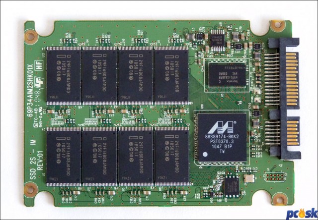 Povrchová úprava pôsobí akosi luxusnejšie oproti iným SSD, ide o kov so zlatistým farebným nádychom. Pod krytom sa nachádza PCB s osadenými 34nm MLC pamäťami (vyhovujúce špecifikácii ONFI 2.0 s prenosovou rýchlosťou 133MB/s na čip), až 128MB veľká DDR3 1333MHz pamäť a samozrejme spomínaný Marvell radič pre S-ATA III rozhranie.