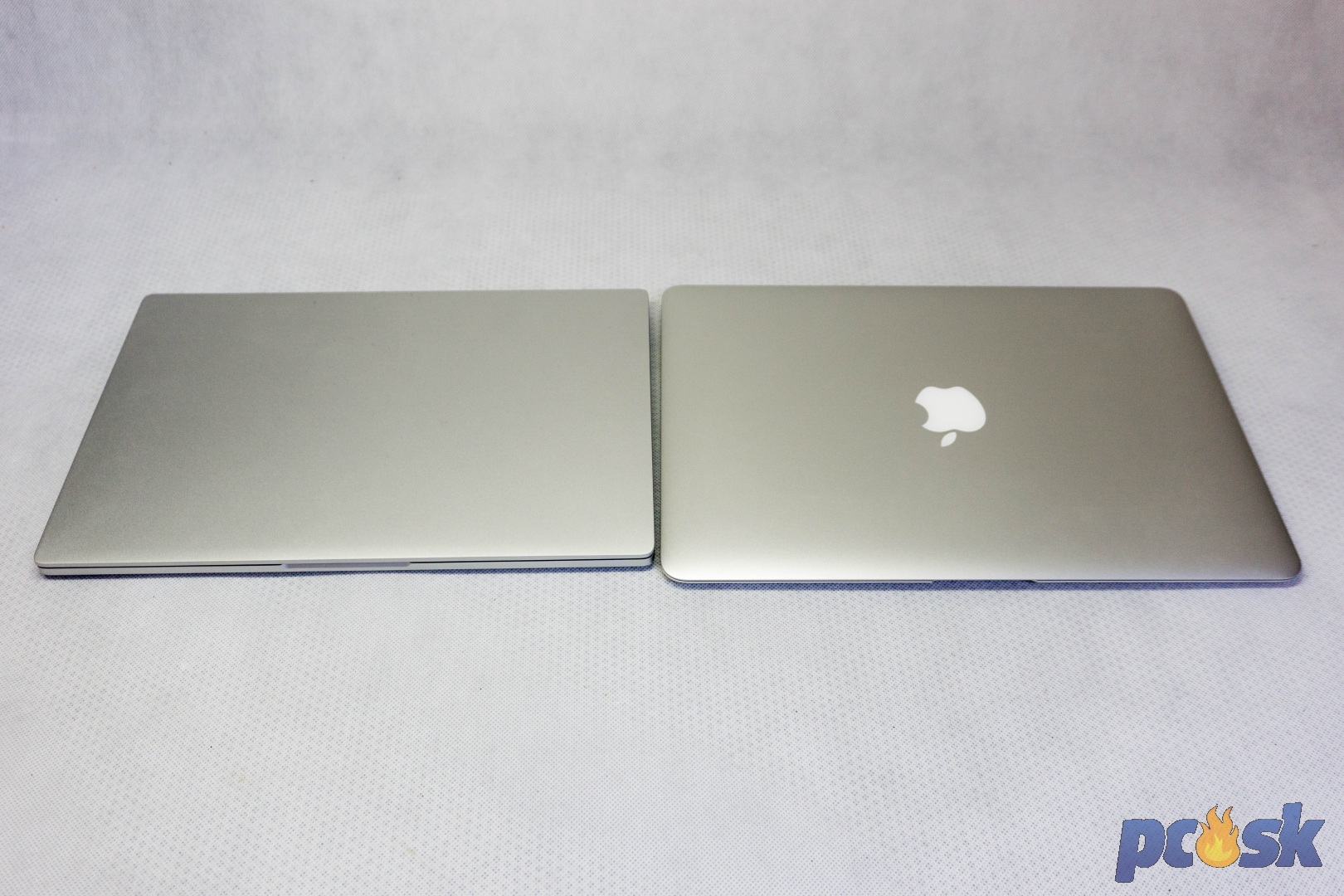 Bližší pohľad na konštrukciu prezradí jeden rozdiel medzi ním a Apple notebookmi. Xiaomi Air je o niečo hrubší (pričom hmotnosť je takmer identická resp. o niečo málo v prospech Xiaomi notebooku), Apple notebook je o trochu väčší a má zaoblenejšie hrany - podobný dizajn sa však rozhodne nezaprie.