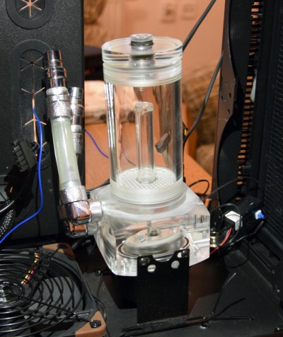 Pri výbere pumpy dbajte na jej výkon a vztlak. Slabšie DC-LT pumpy si väčšinou poradia s menším vztlakom a menším okruhom, väčšine ľudí budú stačiť. Výkonné pumpy D5 sú vhodné pre veľké okruhy. Môžete dokonca uvažovať aj o dvojici púmp, pričom jedna slúži ako záložná. S tým je ďalej spojená otázka, kde umiestniť expanznú nádobu. Je vhodné voliť expanznú nádobu, do ktorej je možné umiestniť rovno aj pumpu, ušetríte tým miesto. Máte na výber klasické valcovité nádobky alebo 3,5“ do šasi na mechaniky. Pri prvej menovanej sa stretneme s problémom umiestnenia. Niektoré nadrozmerné skrinky umožňujú inštaláciu pumpy rovno na radiátor (horizontálna poloha), teda v prípade, že nekolidujú s košom na disky či pre mechaniky. V opačnom prípade sa asi neobídete bez nejakého vŕtania. Ako som už naznačil vyššie, pumpy je väčšinou možné zavesiť (vertikálna poloha), resp. umiestniť na mieste ventilátorov alebo na radiátory (horizontálna poloha). Nápomocné môžu byť niekedy aj s-pásky. Mimochodom, expanzná nádoba nemusí byť umiestnená vyslovene hore či dole, je to na vás. Výpustný ventil (nie je potrebný) umiestňujte výlučne na najspodnejšie miesto v systéme. Pre začiatočníkov je výborné riešenie 3,5“ expanzná nádoba s jednou či dokonca dvoma DC-LT pumpami. Tá sa umiestňuje na mieste mechaniky.