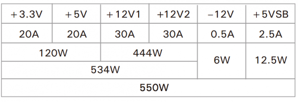 DC výstup | +3,3V | +5V | +12V | -12V | +5VSB |
